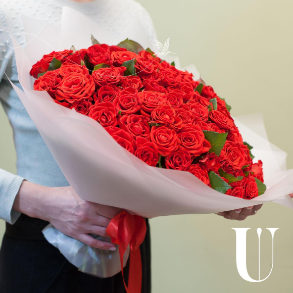 Монобукет из 49 светло-зеленых роз сорта Лимонад 60 см
