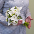 Монобукет из ромашки Камилла и голубого оксипеталума