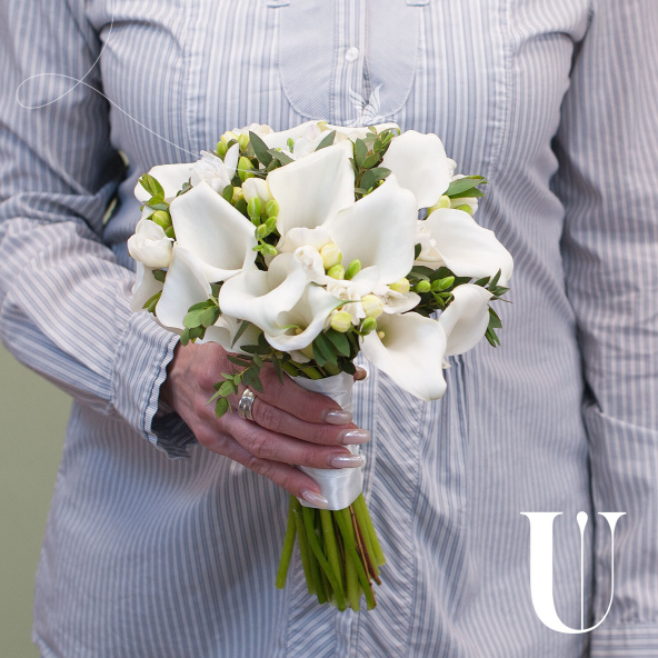 Монобукет из 15 белых орхидей в крафтовой упаковке