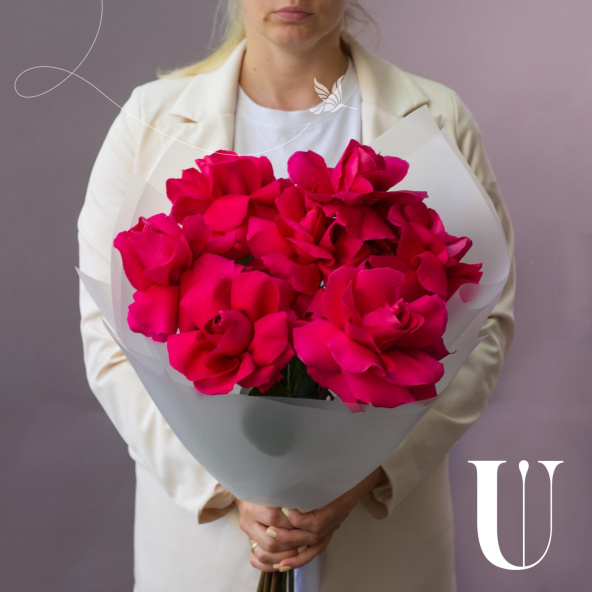 Монобукет из 9 пионовидных роз Пинк Охара в матовой пленке
