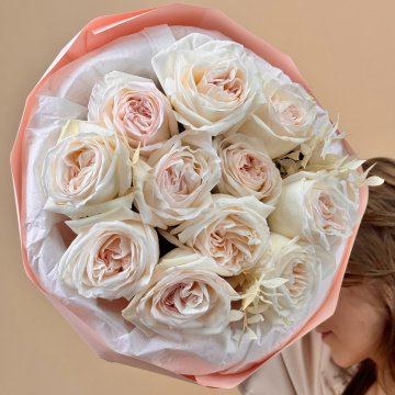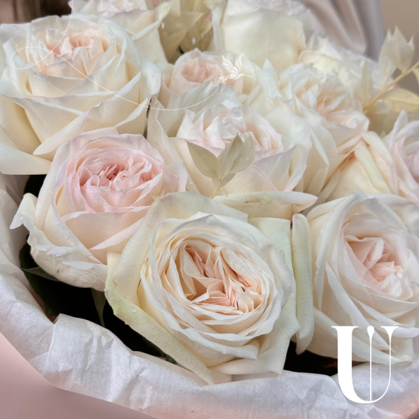 - Роза Вайт Охара, Эквадор, бело-розовая, пионовидная 50 см. - 11 шт