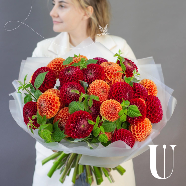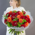 Большой букет из кустовых пионовидных роз Бомбастик в упаковке