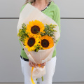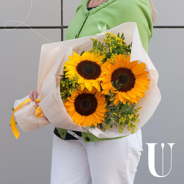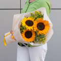 Букет "Лето Золотистое" - это сборный букет, состоящий из двух видов цветов: подсолнуха и солидаго. Эти яркие и солнечные цветы создадут атмосферу радости и тепла, а также подчеркнут вашу заботу и внимание к получателю.