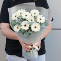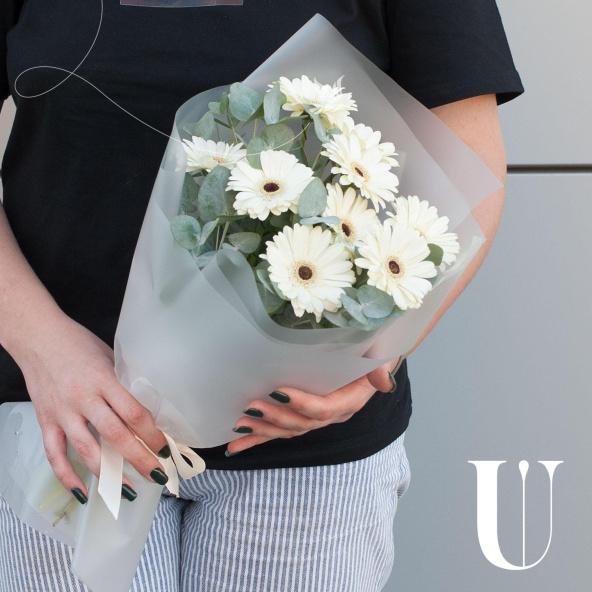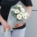 Букет состоит из 9 минигербер белого цвета. Минигерберы - это маленькие, но очень красивые цветы, которые придают букету нежность и воздушность.