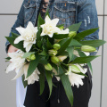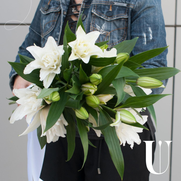 Букет состоит из 5 лилий белого цвета, что придает ему особую нежность и элегантность.