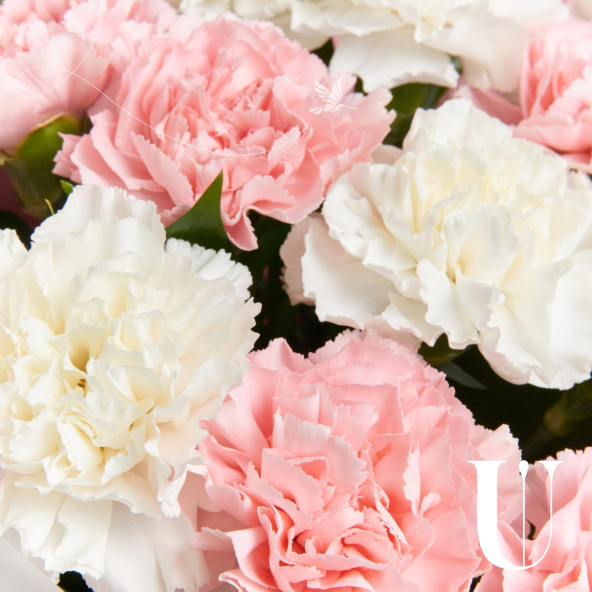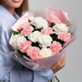 Монобукет из кремовых и розовых диантусолв в упаковке
