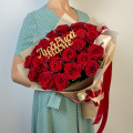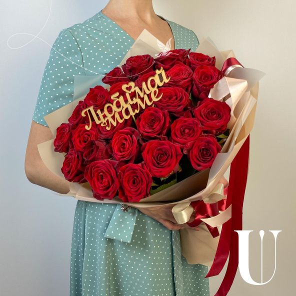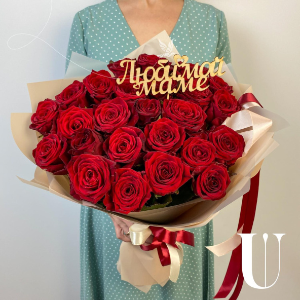 Монобукет из 25 роз сорта Ред Наоми с топпером