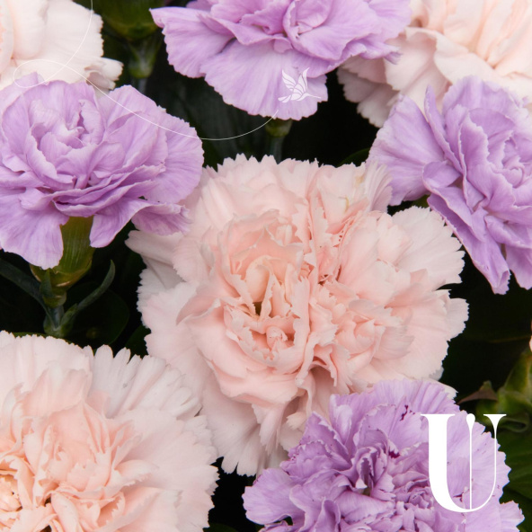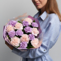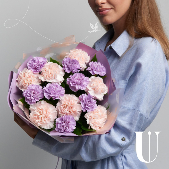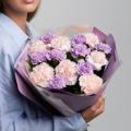 Монобукет из кремовых и розовых диантусолв в упаковке
