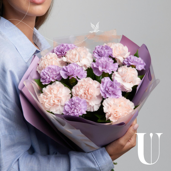Букет из 15 розовых диантусов в дизайнерской упаковке