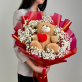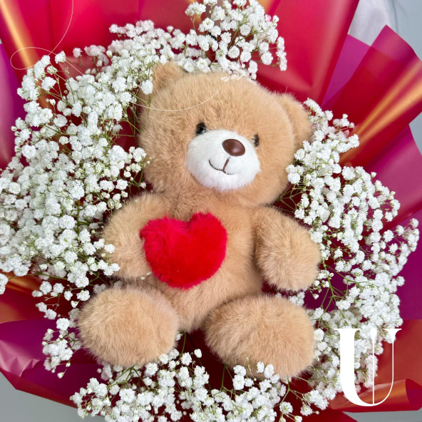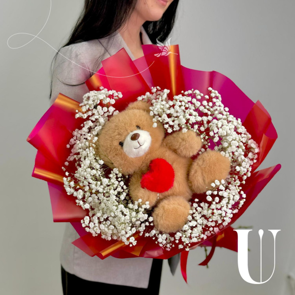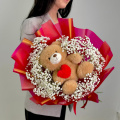 Креативный букет с мягкой игрушкой. Игрушка может отличаться по оттенку.