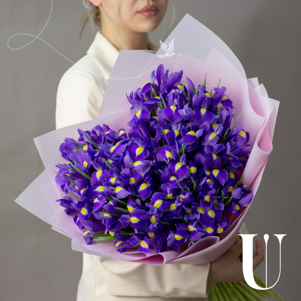 Монобукет из лавандовых маттиол в дизайнерской упаковке