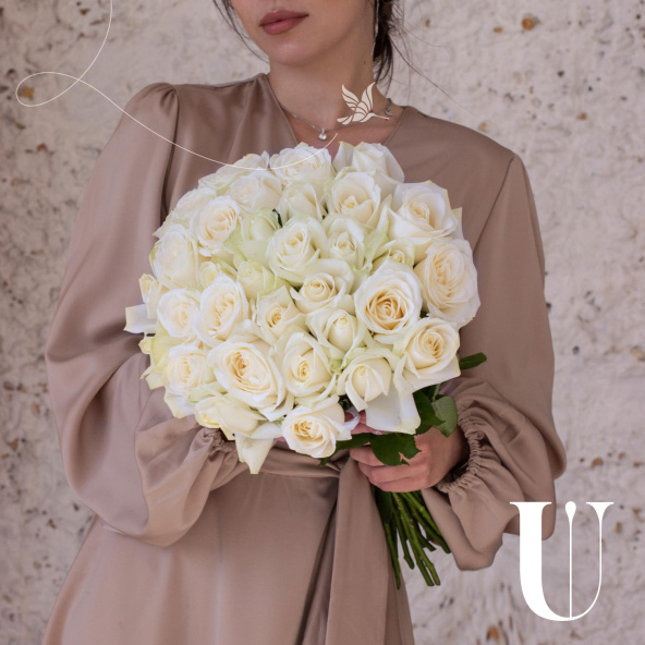 Монобукет из розовых роз Мисти Бабблз 50 см в упаковке тиффани