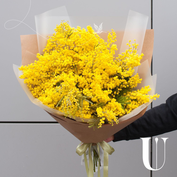 Монобукет из мимозы - это композиция, состоящая только из одного вида цветов. Такой подход позволяет подчеркнуть красоту и уникальность каждого цветка, а также сделать акцент на его аромате.