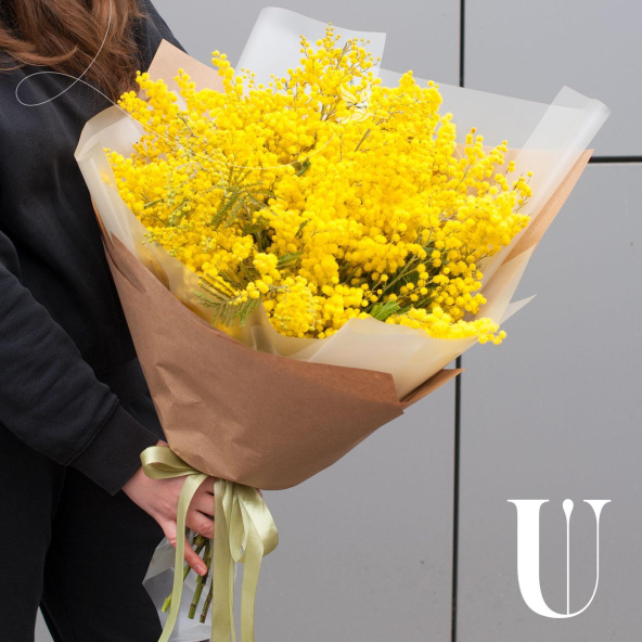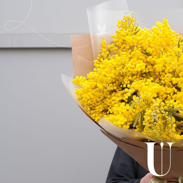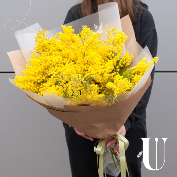 Букет из мимозы "Свежесть" - это стильный и яркий подарок, который подойдет для любого случая.