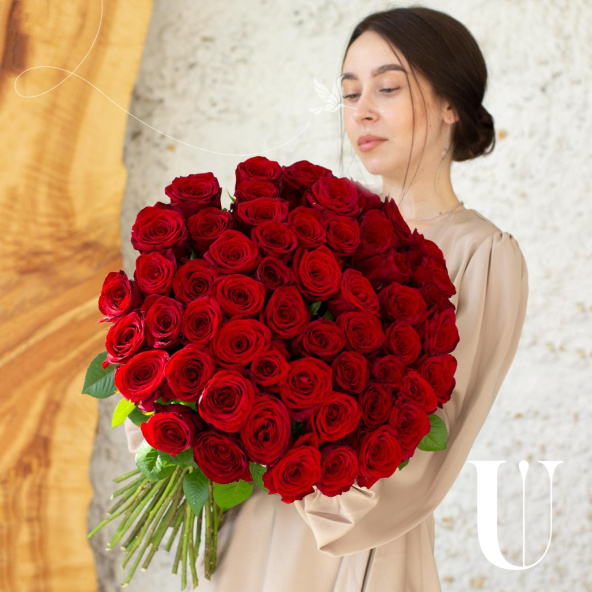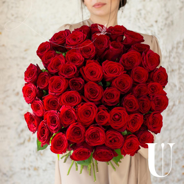 Монобукет из 55 роз сорта Ред Наоми 60 см