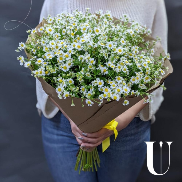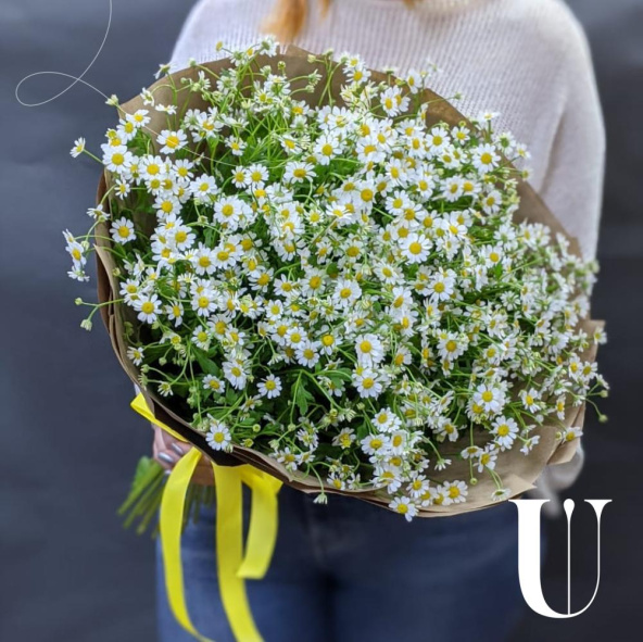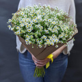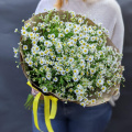 Огромный букет из кустовых хризантем в дизайнерской упаковке
