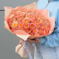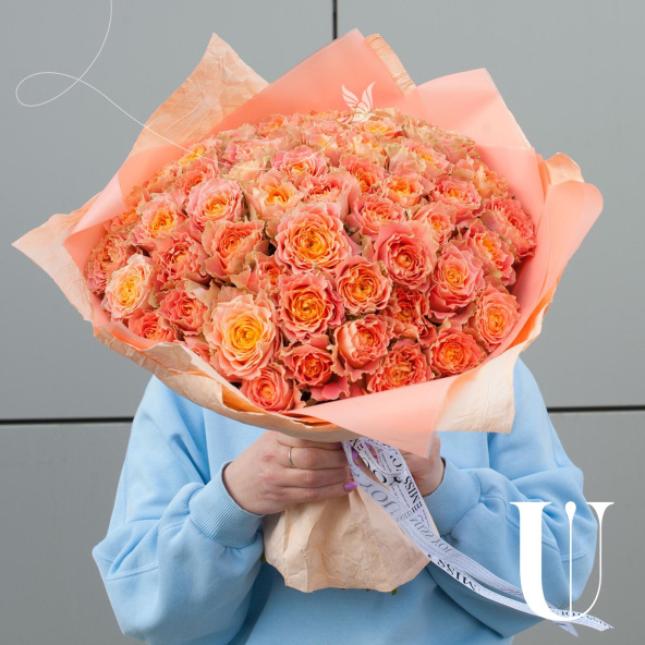 Букет состоит из 49 оранжевых пионовидных роз, которые собраны на стеблях и упакованы в крафт-бумагу. Такой монобукет будет выглядеть элегантно и изысканно, а также подчеркнет ваш вкус и внимание к деталям.