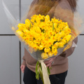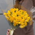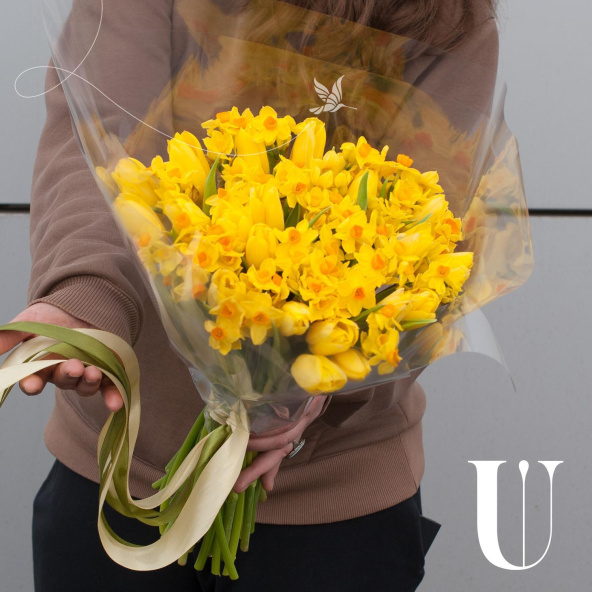 Букет состоит из 41 цветка, включая 21 нарцисс и 20 тюльпанов.