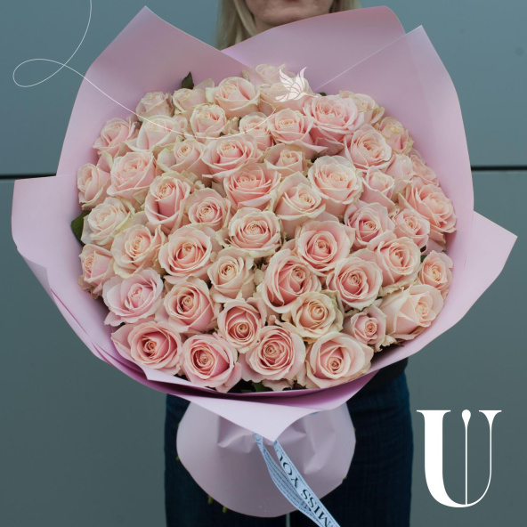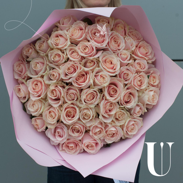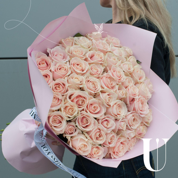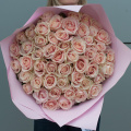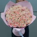 Букет цветов "Жемчужина из роз" в персиковых тонах – это изысканный монобукет, состоящий из 51 розы.