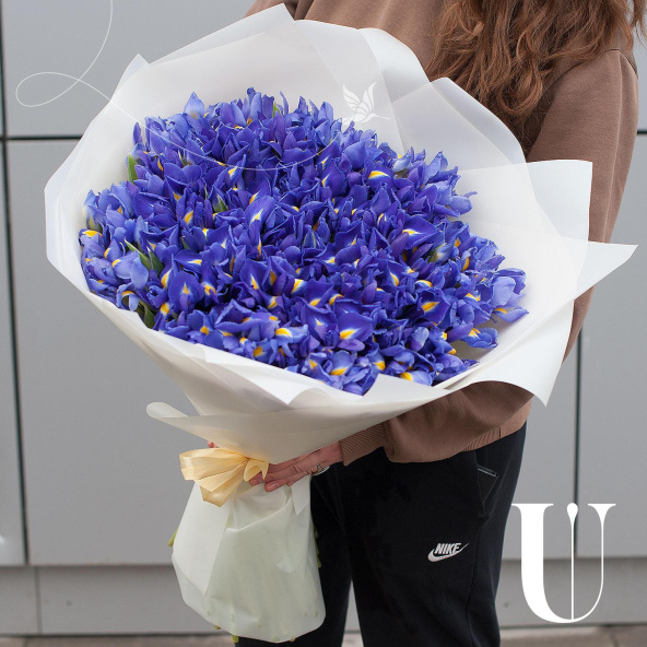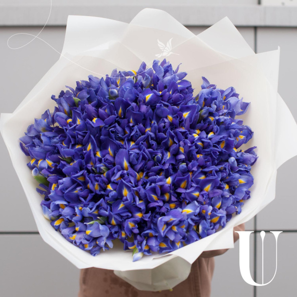 Букет состоит из 151 синего ириса, что делает его ярким и запоминающимся. Ирисы - символ любви, преданности и нежности, что делает этот букет еще более привлекательным.