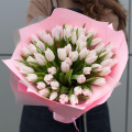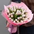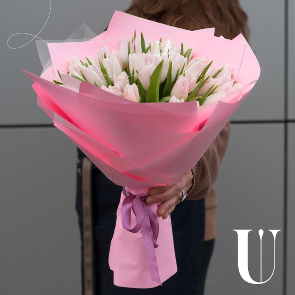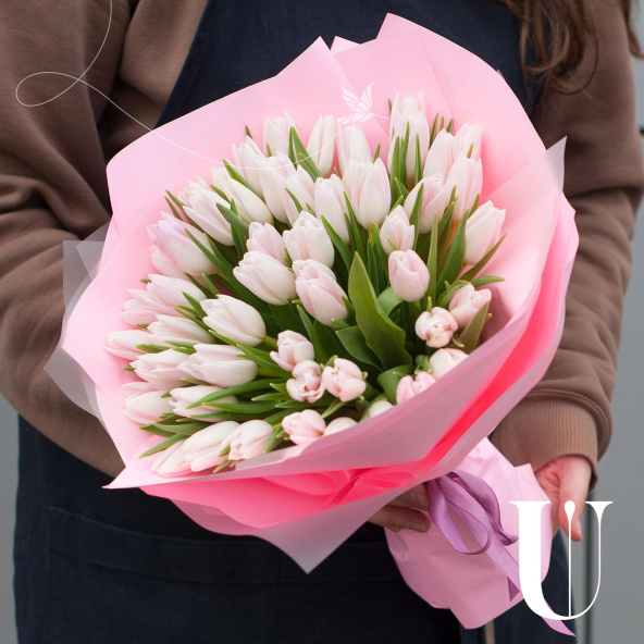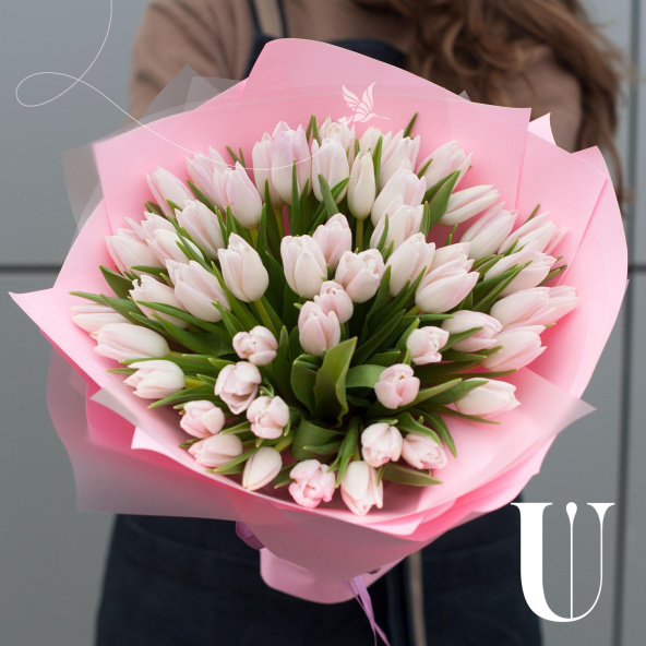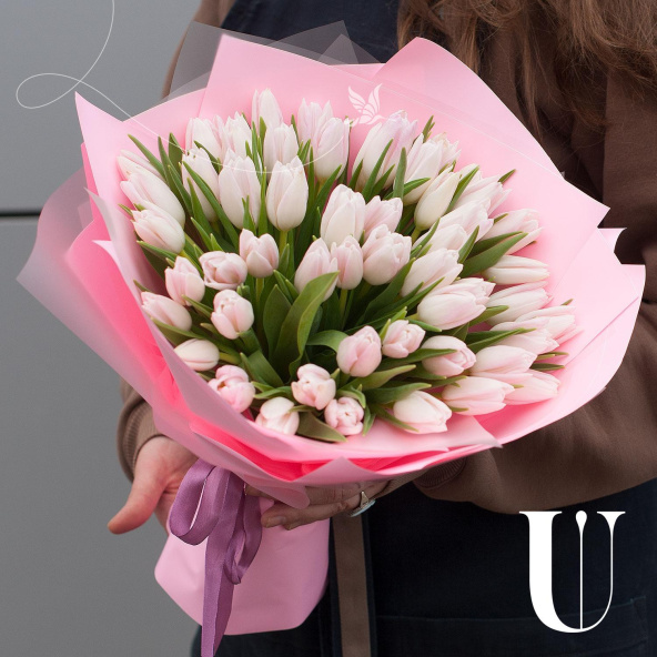 Букет состоит из 49 нежно-розовых тюльпанов, собранных на стеблях. Тюльпаны - символ любви и нежности, они добавят в ваш подарок особую атмосферу и подчеркнут вашу заботу.