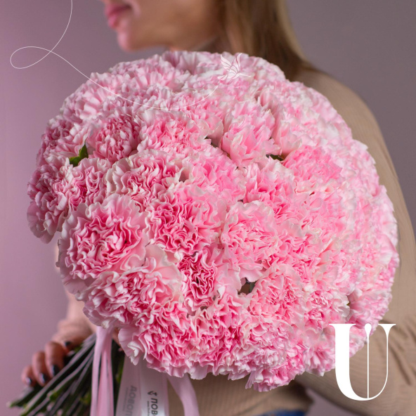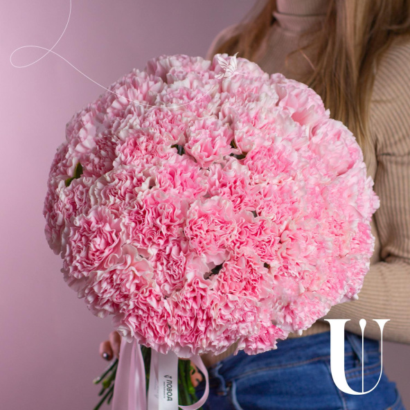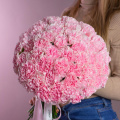 Большой букет из 51 кремовой розы в розовой упаковке