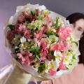 Монобукет из радужной гипсофилы в дизайнерской упаковке