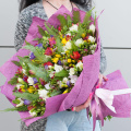 Подарите радость и яркие эмоции с букетом из разноцветных фрезий. В составе букета 101 цветок, которые собраны на стеблях и упакованы в крафт-бумагу с декоративной лентой.