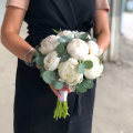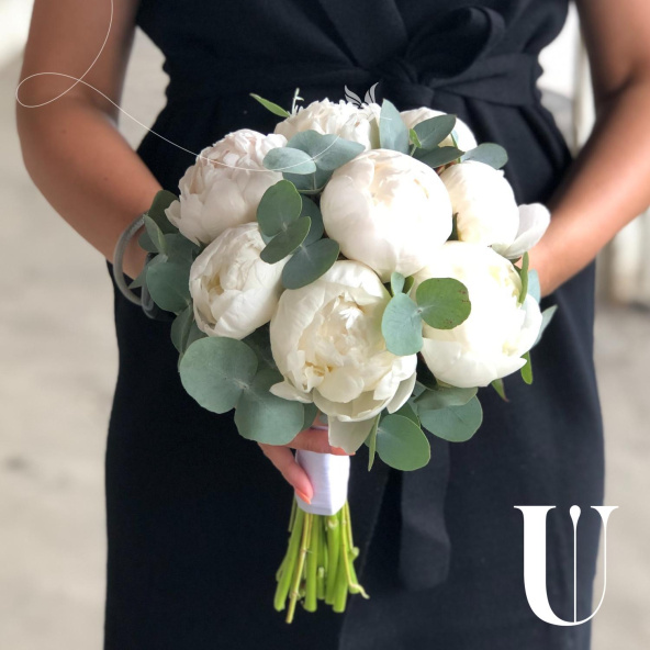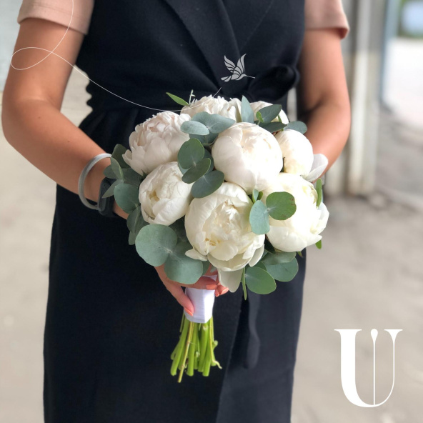 Нежный букет из пионов в сочетании с эвкалиптом - неувядающая классика