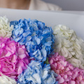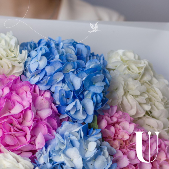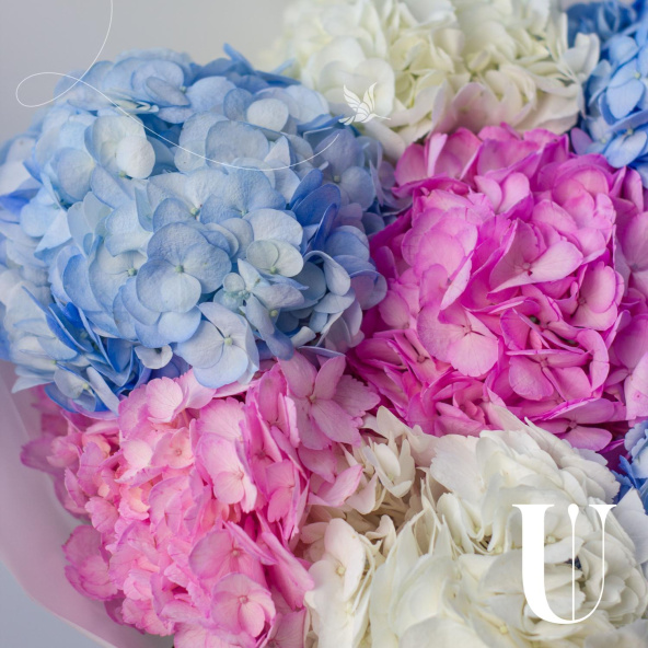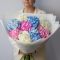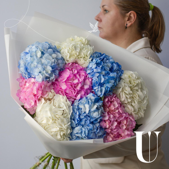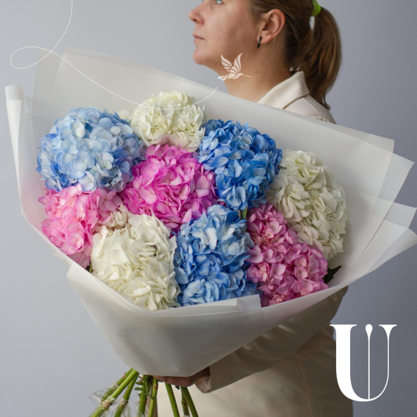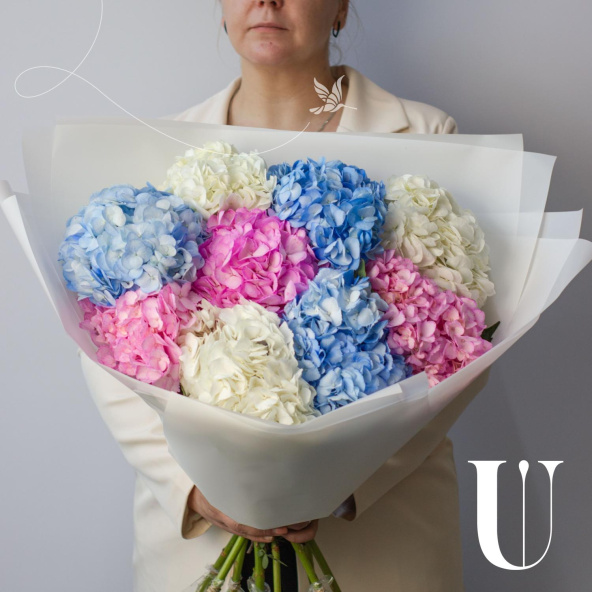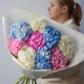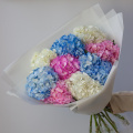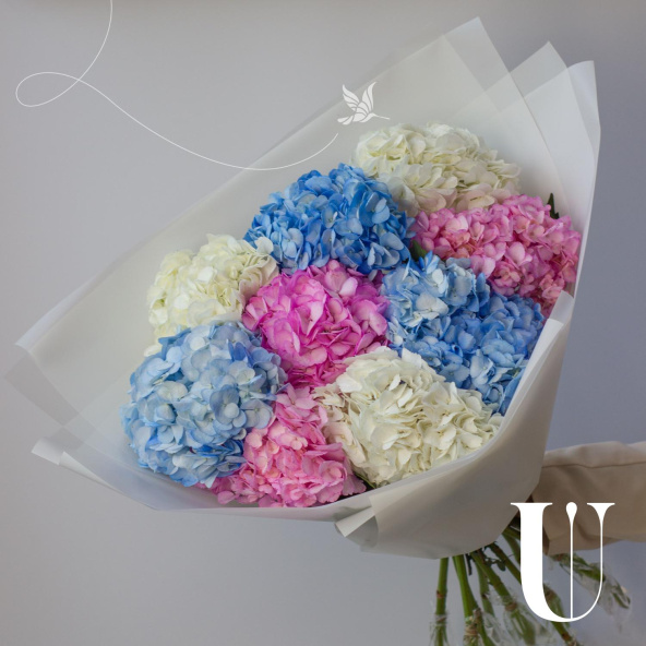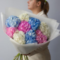Монобукет из 11 голубых гортензий в дезайнерской пленке