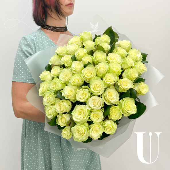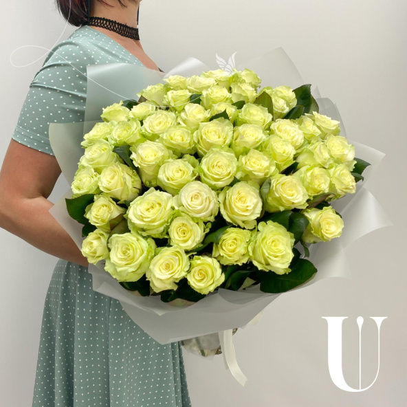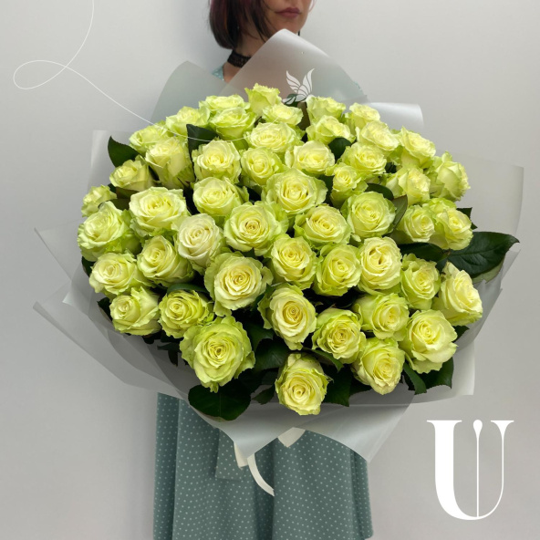 Роза Лимонад, Эквадор, бело-зеленая, 60 см. - 49 шт