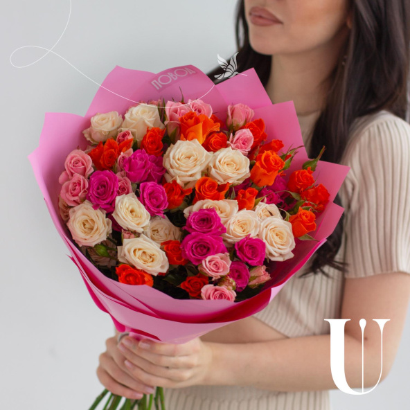 - Роза кустовая, оранжевая, 50 см. - 5 шт