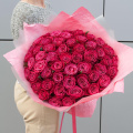 Букет из ярко-малиновых роз "Шангрила" - это стильный и элегантный подарок, который подойдет для любого повода.
