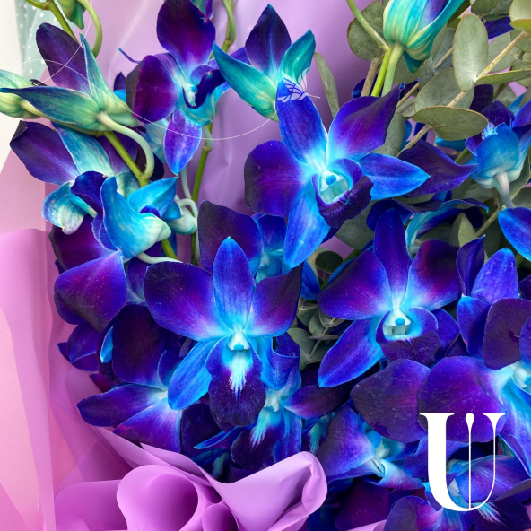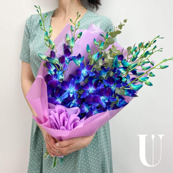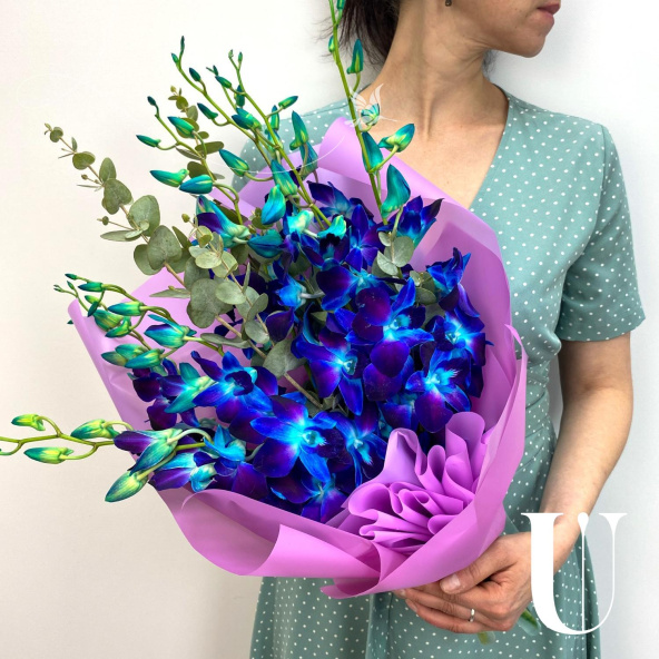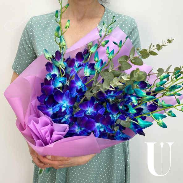Монобукет из голубой гортензии в дизайнерской упаковке