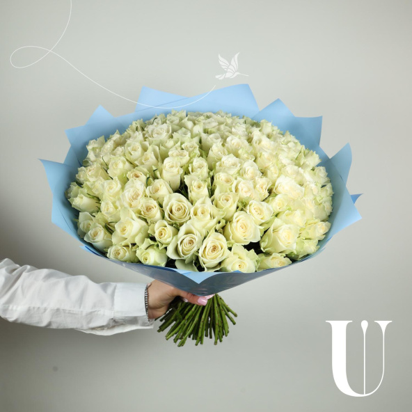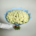 Монобукет из 25 белых роз сорта Аваланж в упаковке