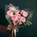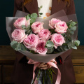 Букет из 15 пионовидных роз Шиммер в дизайнерской упаковке