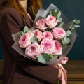 Букет из 9 пионовидных роз Эквадор в серой упаковке