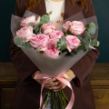 Монобукет из 11 роз Пинк Мондиаль в упаковке