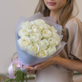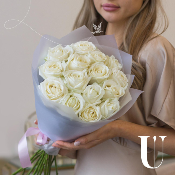 Монобукет из 11 роз Вайт Охара в розовой упаковке