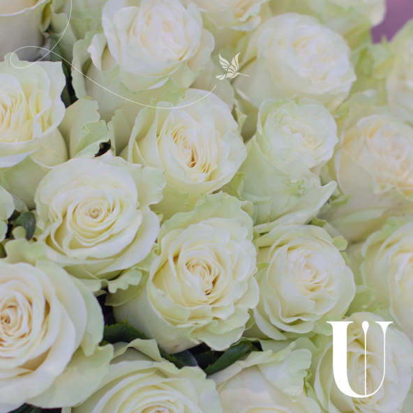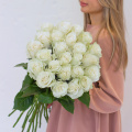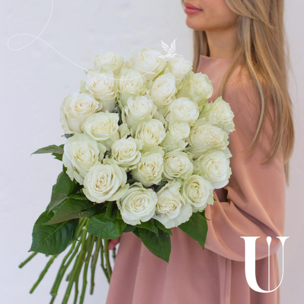 Букет из 25 роз сорта Вайт Охара в глянцевой пленке
