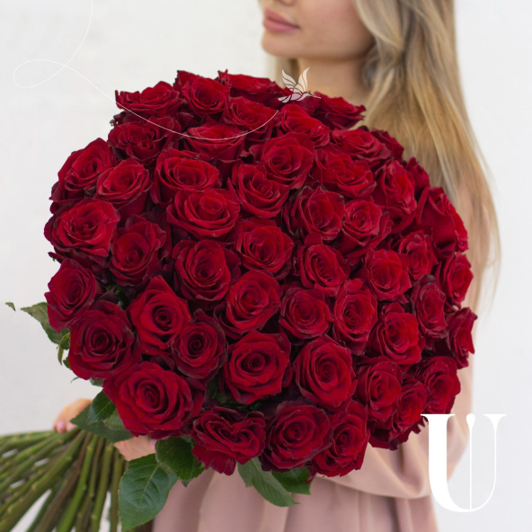 Монобукет из 51 розы сорта Мондиаль 70 см