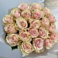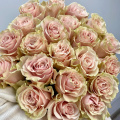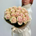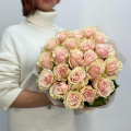 Монобукет из 25 пионовидных розовых роз в дизайнерской упаковке