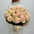 Монобукет из 25 роз сорта Плаяй Бланка в упаковке