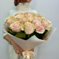 Монобукет из 51 розы сорта Шангри Ла в крафтовой упаковке