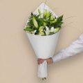 Букет из белых диантусов, нобилиса и белых шаров в упаковке