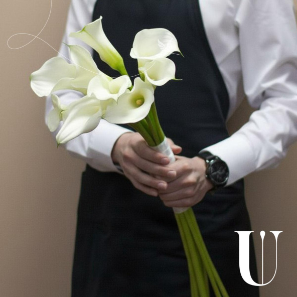 Монобукет из белых сантини Маве6рик в дизайнерской упаковке