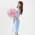 Монобукет из 5 розовых пионов сорта Сара Бернар в розовой упаковке