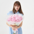 Монобукет из розовых и белых гортензий в упаковке