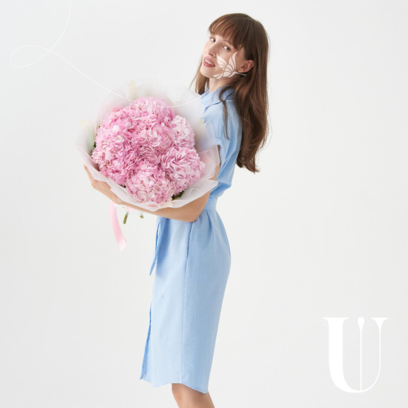 Монобукет из розовых гортензий в дизайнерской упаковке