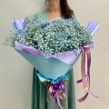 Монобукет из белых кустовых хризантем в лавандовой упаковке